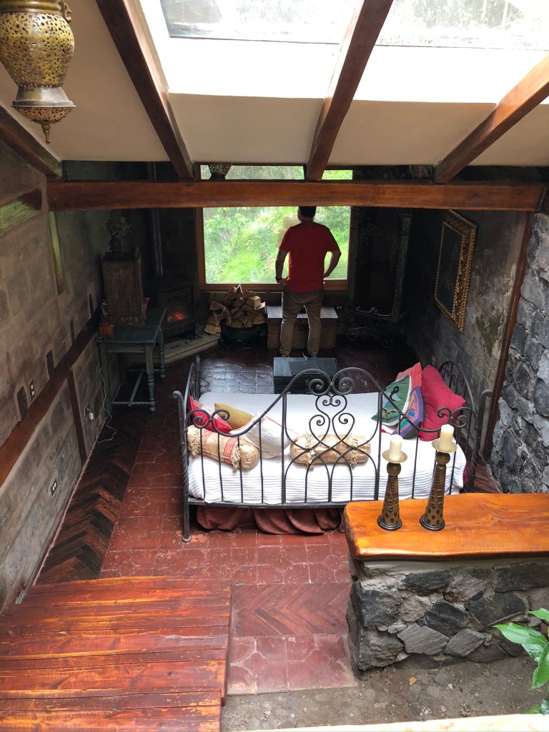 The hotel is spectacular, nestled at about 10.5k feet into wildly steep hills (which in most places would be called mountains). Christina the hostess shows us to our hacienda, an amazing split-level perch, with Spanish tile and exposed wood beams.