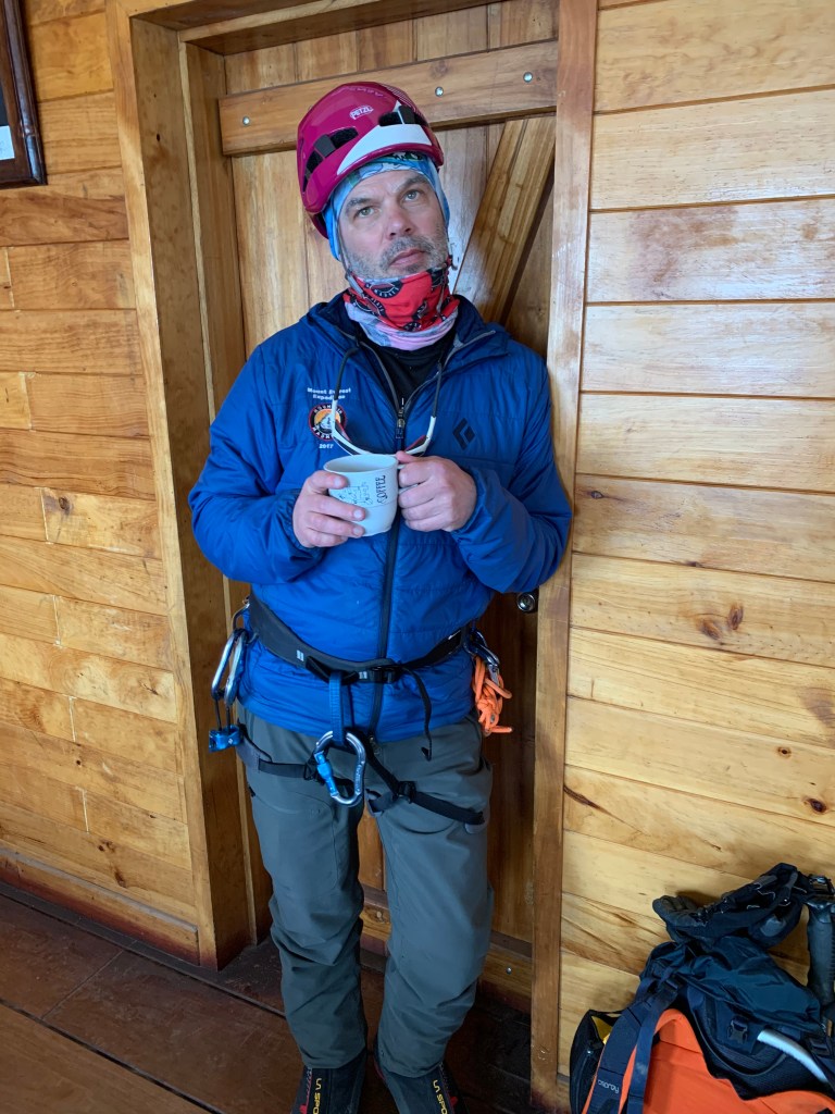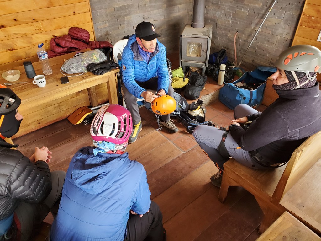 Originally we planned to stay here a third night, but I orchestrate a revolt, and Ossy now blesses our descent to the lower hut for both Saturday and Sunday nights. Otherwise Saturday (as the busiest climbing day) will involve — spellcheck just changed that last word to “violence” — a climber into every single bunk of this small lodge: triple-level beds crammed so tightly you couldn’t even lose a sock between them. Add a mass of tangled climbing gear and the scene becomes uninhabitable. Compare that to the lower lodge — showers, laundry, real meals, and the place entirely to ourselves — and you can see why the coup succeeded.