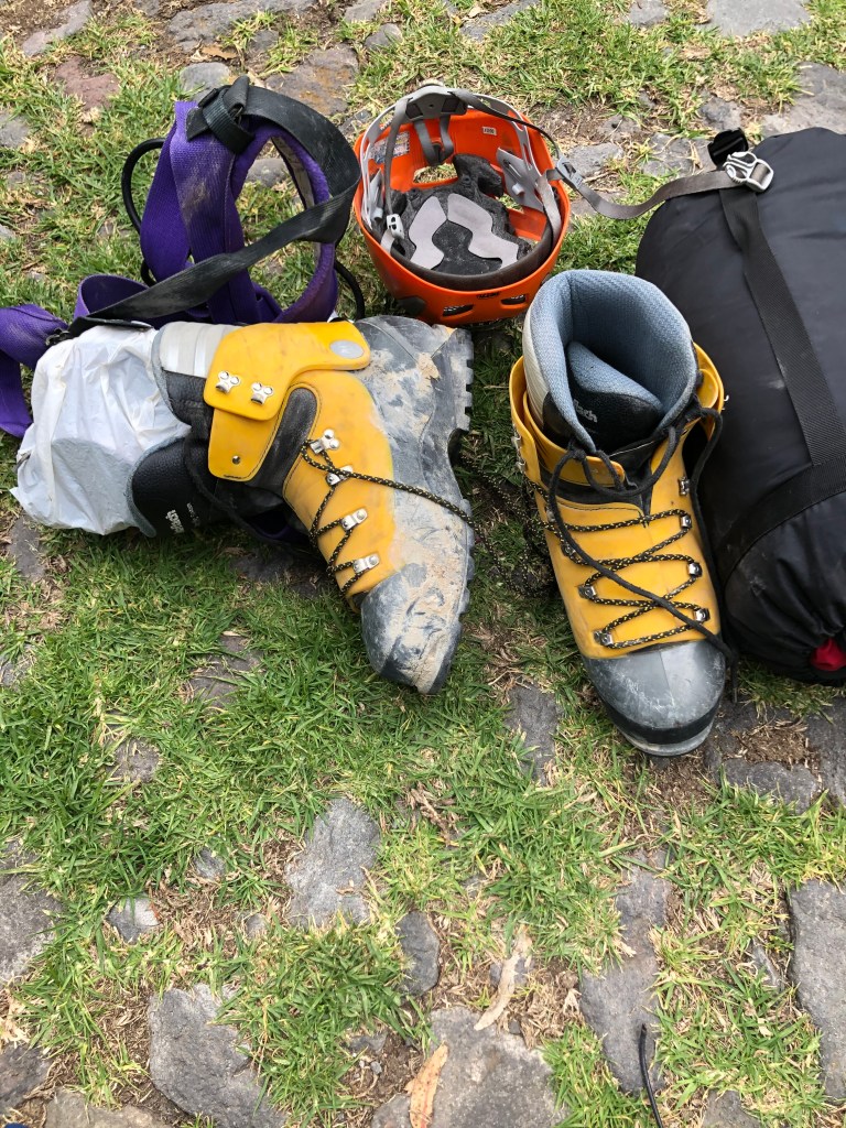 A fresh group arrives: five climbers with the prerequisites to place out of glacier school. Three will join us for Cayambe and Cotopaxi; two will continue on to Chimborazo as well. They all have prior glacier experience and are ten to twenty years younger than our group of five old men riding the short bus to glacier school.