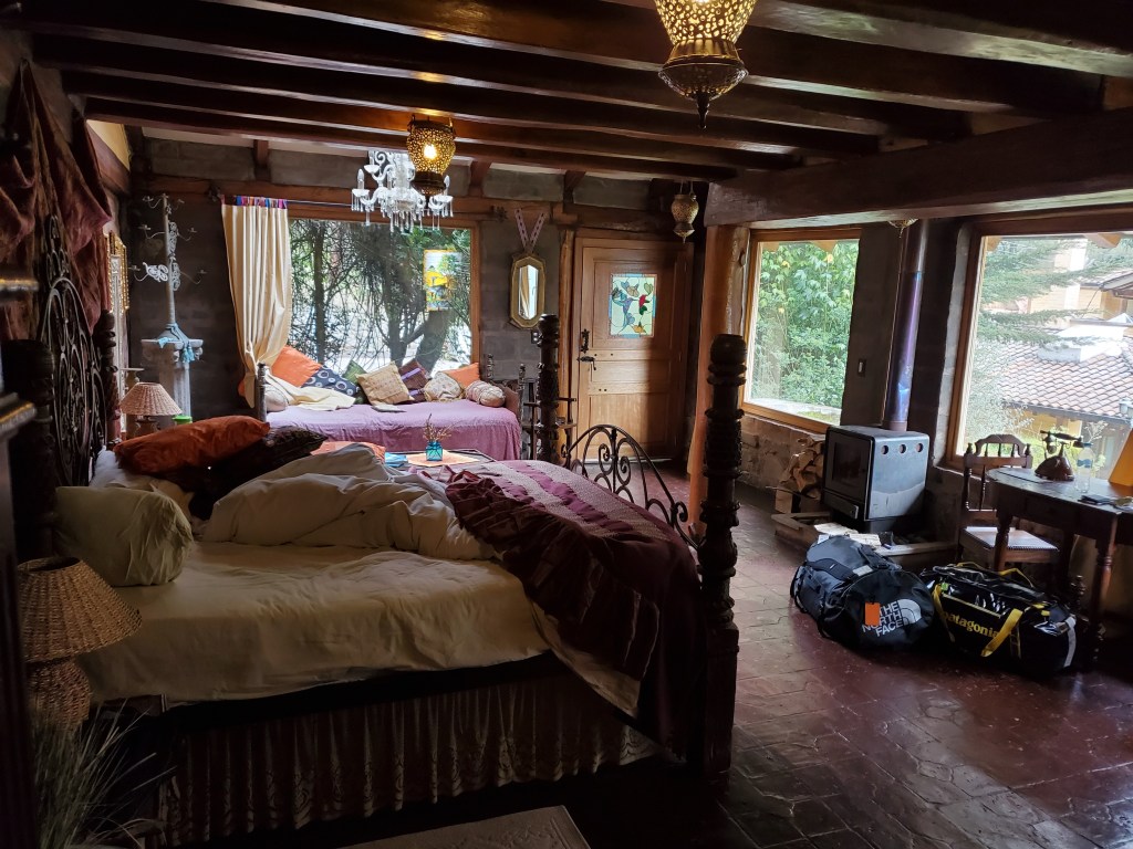We reached Rumiloma just after noon yesterday. It’s sunny and warm, and it feels great to unpack and dry out wet, muddy gear. As usual, the staff fires the wood-burning stove in our room—totally unnecessary for the temperature, but ideal for gear-drying.