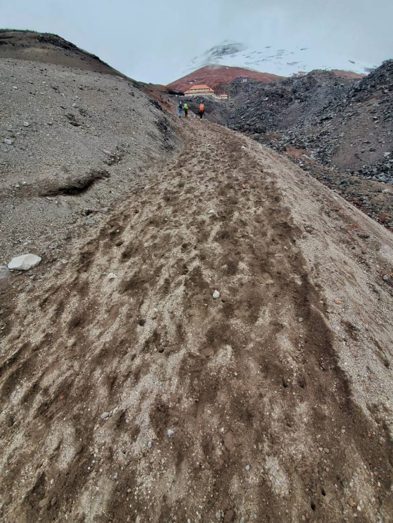 The hut is nice in some ways and decrepit in others. The bunk room and beds are less mangy than upper Cayambe, but the bathrooms and kitchen are worse. During the day, you have to go outside to a separate bathroom hut, which at this altitude means ass-cold and no running water. The faucets are decorative. If you take a crap, you must fill a bucket from the giant blue drum of Clorox-infused water outside and dump it into the bowl. I shit you not. (At night they open an indoor bathroom, which mitigates the cold but still requires the same bucket ritual.)