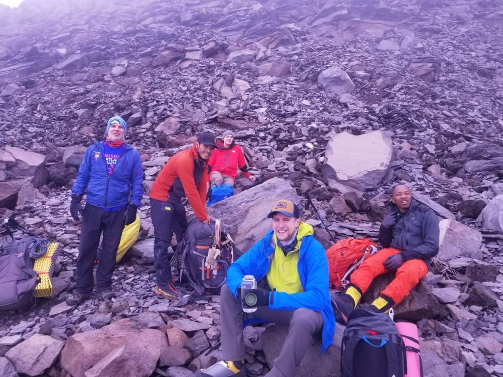 Back inside: wedge, lie down, heart rate spiking, breathing like I’m sprinting. Can anyone else hear this cardiac meltdown? I try to calm down. Thirty minutes pass. A presence returns. This HAS to be a mental trick. I just went. Poke, poke, poke. Now it’s dark, so I have to use the headlight attached to my climbing helmet, which is clipped to a tent pole over my bag. Out I go again. Hike, piss, return, pant, calm. This time I think I doze off for a bit. When I wake, clear the fog and check my watch, it’s only 9:45! Guides don’t wake us until 11pm, and there it is again, I can feel it. Diamox, damn you!
