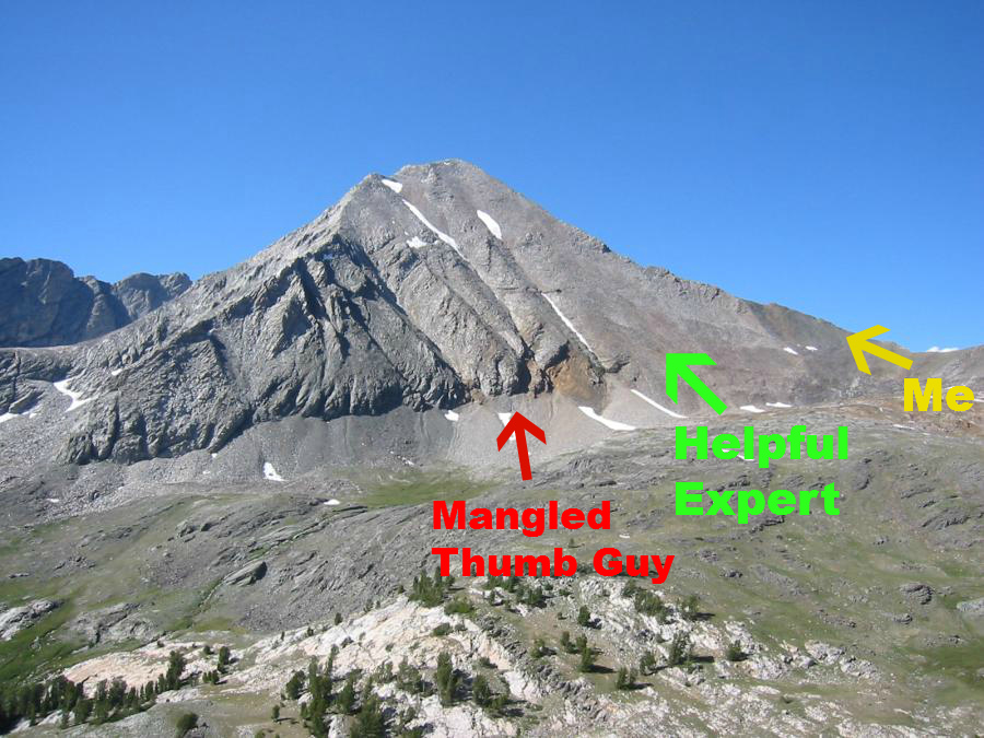 Somehow the topic of Borah comes up, which I had climbed a couple of weeks before. When I mention the challenges of Chicken-Out Ridge—and I can pretty much see this part coming—he repeats the same bullshit tale I had read on some blogs before climbing Borah: “We hiked and hiked, and at some point we asked someone where Chicken-Out Ridge was, and they told us we had just crossed it without even knowing it!” (Read my Borah trip report if you’re not sure how that comment resonated. Also, because I’m petty like that, I’ll point out that the Helpful Expert didn’t actually do COR; he took only the “go around” route to south.)
