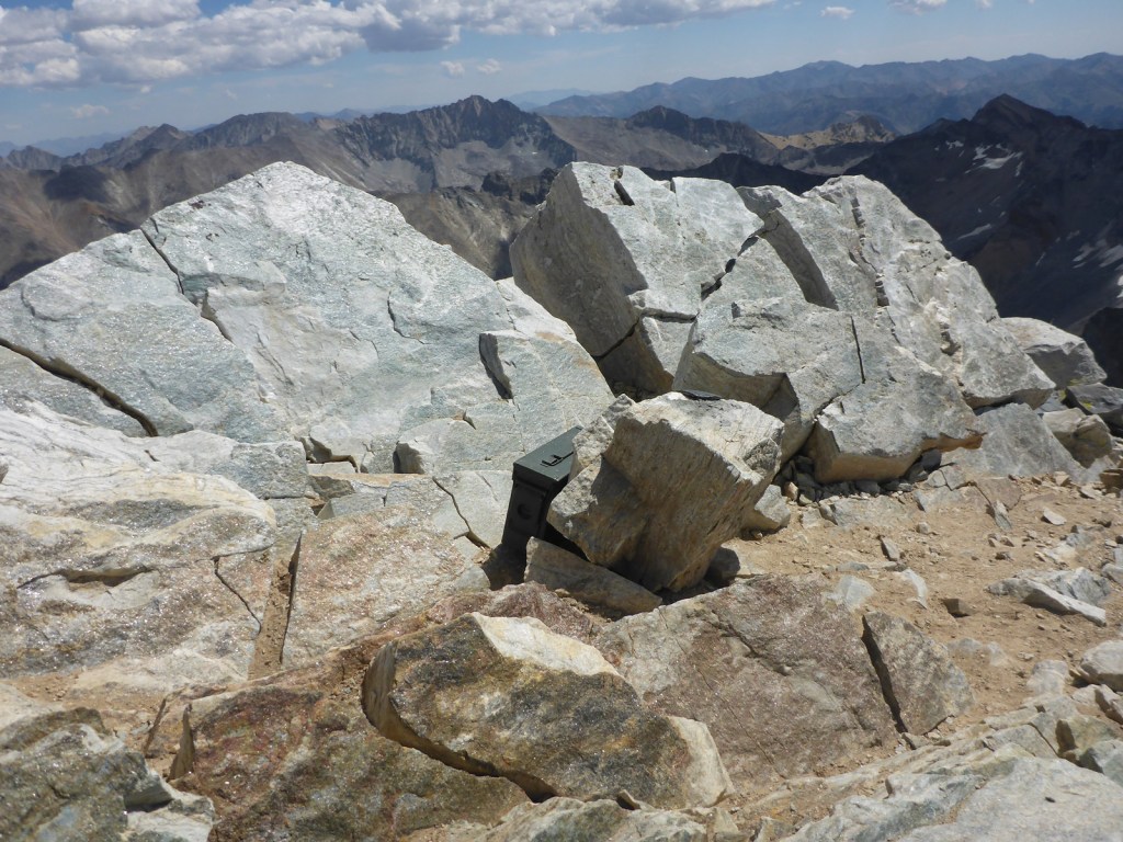 Riding that bit of inspiration, I make the final push to the summit. I think I could hear the Hoos singing as I reach the peak. Of all the beautiful views from that perch, none is more rewarding than that of the dusty olive ammunition can holding the summit log, which I promptly and proudly sign.