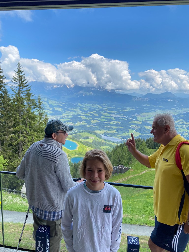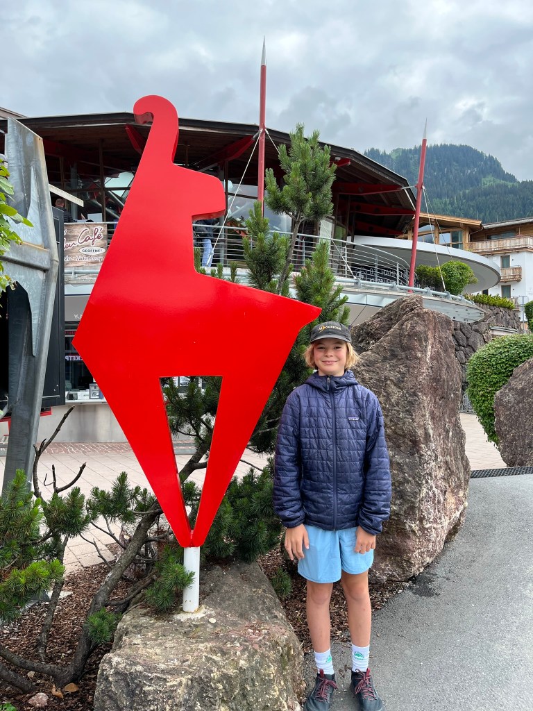 Most exciting for the boy, we get to ride down the Hannenkahm, home to the most preposterously terrifying downhill ski race on the World Cup circuit. We ride the gondola to the start house and cringe at the steepest section of the downhill race, with the phonetically apt name of “the Streif.”