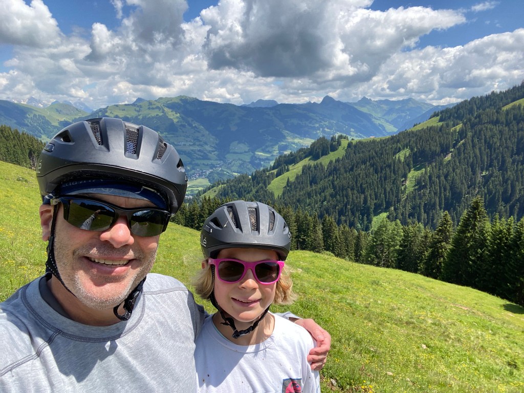 The next morning, Elliott and I split off for a day of alpine mountain biking while the girls luxuriate at a fancy public pool. We rent bikes and get a four-hour pass to ride the gondolas around Kitzbuhel.